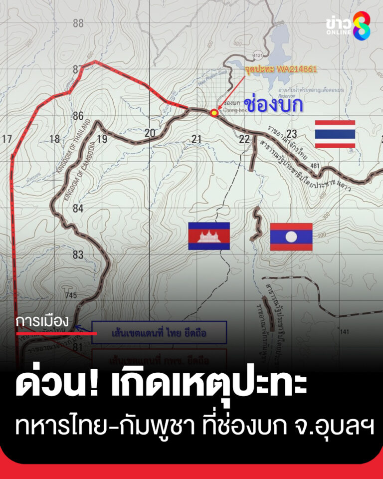 ด่วน! เกิดเหตุปะทะ ทหารไทย-ทหารกัมพูชา ที่ช่องบก จ.อุบลราชธานี