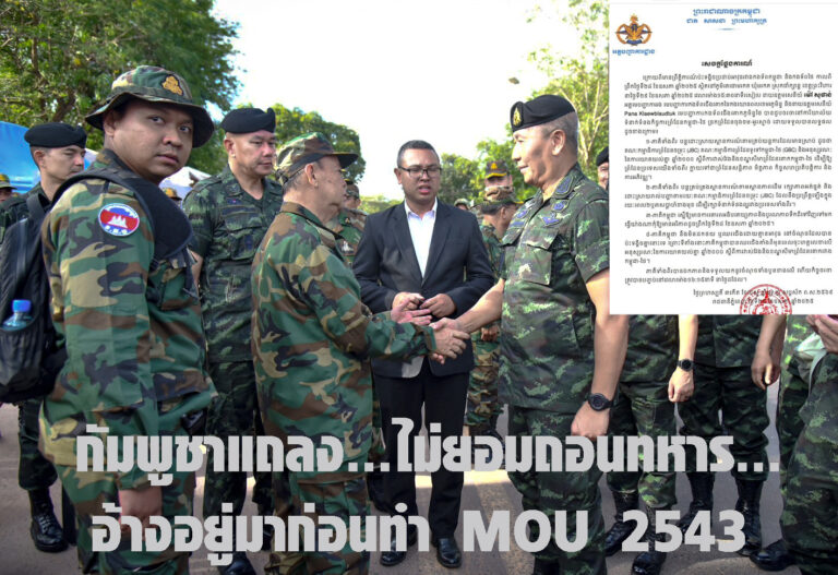 บก.ทหารสูงสุดกัมพูชาออกแถลงการณ์ อ้างสิทธิ์การครอบครองก่อนทำ MOU 2543 ไม่ยอมถอนทหาร